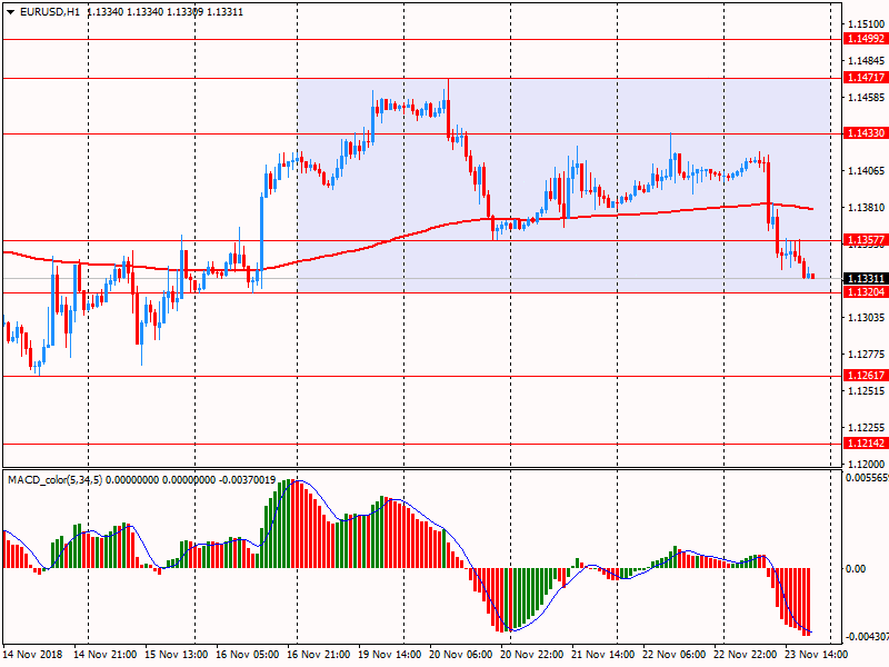 В пятницу евро существенно снизился, достигнув недельного минимума. Обвал пары EUR/USD был вызван публикацией разочаровывающих данных по еврозоне и Германии, а также усилением спроса на американскую валюту в ответ на возобновившееся бегство от рисков. Композитный индекс деловой активности в еврозоне от IHS Markit в ноябре снизился до 52,4 пункта с 53,1 пункта в октябре. Это по-прежнему представляет собой расширение, но является самым слабым чтением с конца 2014 года. Доходность облигаций упала, так как инвесторы увеличили ставки на то, что слабый рост по всей еврозоне замедлит план ЕЦБ по отмене стимулов.