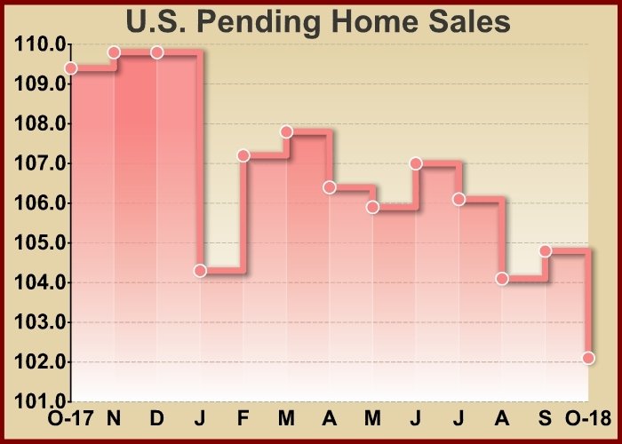 NAR заявила, что индекс незавершенных сделок по продаже жилья упал в октябре на 2,6%, до 102,1 пункта, после роста на 0,7% в сентябре (пересмотрено с +0,5%). В итоге, индекс достиг самого низкого уровня с середины 2014 года. Резкое снижение удивило экономистов, которые ожидали, что индекс возрастет на 0,5%.