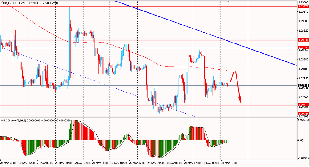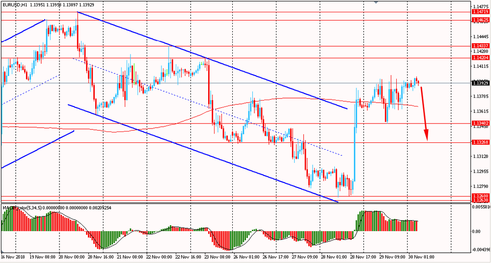 Сегодня утром пара EUR/USD торговалась в диапазоне $1.1385-00, находясь около вчерашнего максимума. В четверг пара весь день торговалась разнонаправленно, в узком диапазоне и закрыла день без существенных изменений. EUR/USD по-прежнему тестирует на прочность линию скользящей средней MA 200 H1 и наклонное сопротивление даунтренда от 20 ноября. Пока евро окончательно не смог закрепиться выше мувинга, медведи все еще удерживают общую ситуацию и сценарий формирования нового нисходящего импульса высоко вероятен.