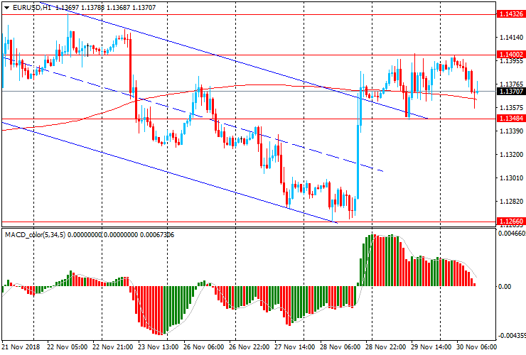 Евро немного снизился, так как инвесторы осторожны в преддверии старта саммита G20 в Аргентине. Также на динамику торгов повлияли неоднозначные экономические данные из еврозоны.