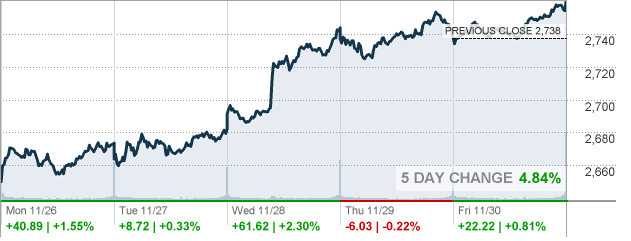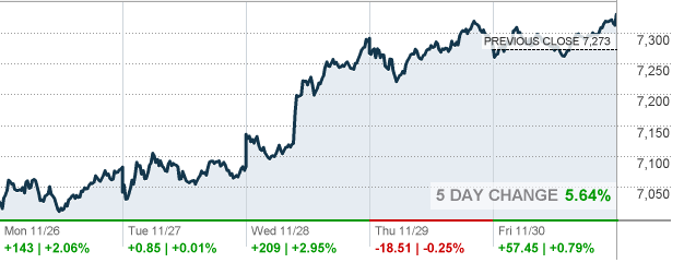 По итогам торговой недели: DOW +5.16%, S&P +4.84%, Nasdaq +5.64%