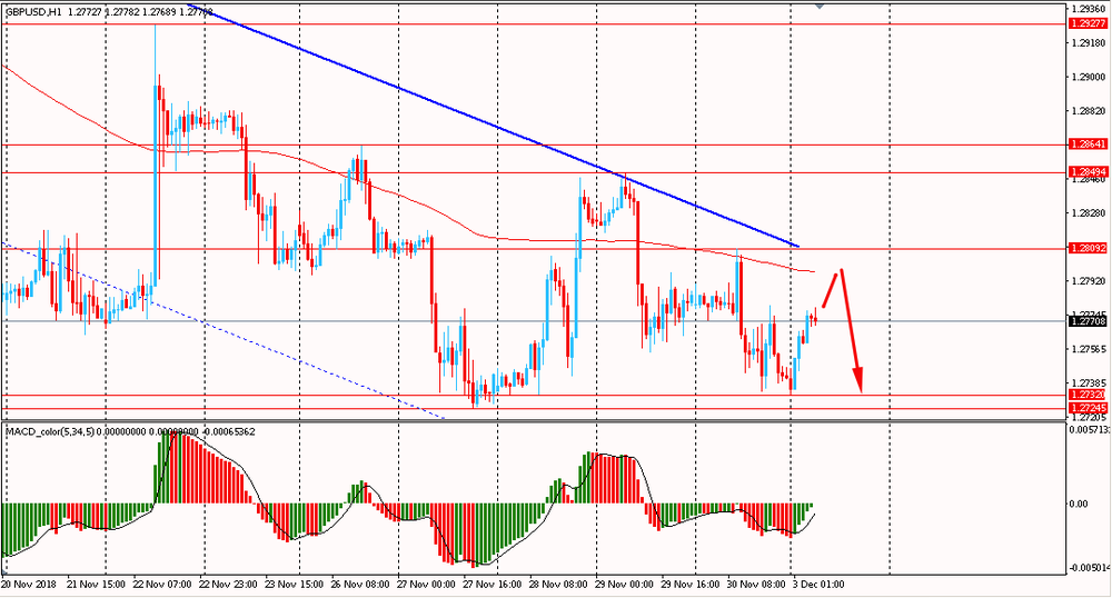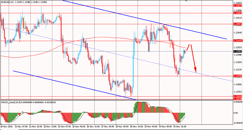 Сегодня утром пара EUR/USD немного выросла к $1.1355, восстановившись после вчерашнего минимума. В пятницу пара, оттолкнувшись от линии сопротивления общего нисходящего канала, упала и закрыла день на отрицательной территории. Помимо этого, EUR/USD сумела снова закрепиться ниже линии скользящей средней MA 200 H1 и на данный момент продолжает оставаться в глобальном даунтренде от 20 ноября. Пока медведи все еще удерживают общую ситуацию и сценарий формирования нового нисходящего импульса высоко вероятен.