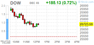 Основные фондовые индексы США выросли в понедельник, чему способствовал рост чувствительных к торговле промышленных и технологических акций после того, как Соединенные Штаты и Китай договорились о временном торговом перемирие. Данное соглашение было достигнуто в эти выходные в Аргентине, где проходила встреча лидеров стран G20. Согласно достигнутой договоренности, данный мораторий вводится на 90 дневный период, чтобы стороны выработали окончательное соглашение по торговым вопросам. Кроме того, Китай согласился увеличить закупки произведенной в США сельскохозяйственной и промышленной продукции, а также сократить тарифы на импортируемые из США автомобили, которые сейчас составляют 40%.