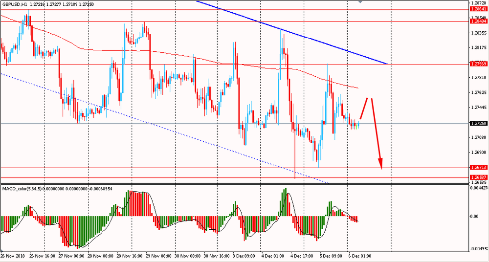 Пара GBP/USD сегодня утром торговалась в диапазоне $1.2720-35. Вчера пара также торговалась разнонаправленно и закрыла день около цены открытия. Помимо этого, GBP/USD удалось окончательно вернуться ниже линии скользящей средней MA 200 H1. На данный момент пара формирует новое импульсное движение в рамках общего даунтренда от 7 ноября. В связи с этим лучше и далее придерживаться южного направления в торговле и на образование коррекции открывать новые продажи фунта против американского доллара.