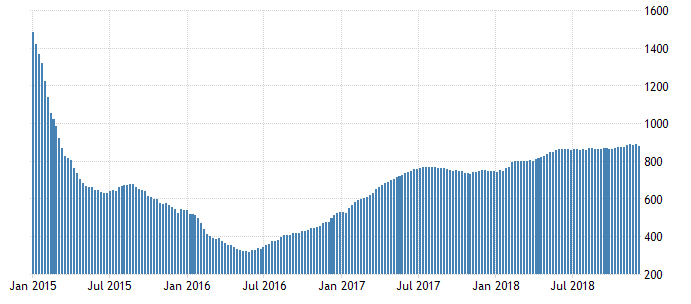 Отчет нефтесервисной компании Baker Hughes показал: с 1 по 7 декабря количество активных буровых установок по добыче нефти в США снизилось на 10 штук, и составило 877 единиц. Напомним, годом ранее количество установок составляло 751 штук. Количество установок по добыче газа выросло на 9 штук, до 198 единиц. Общее число буровых установок (газовых, нефтяных и прочих) уменьшилось на 1 штуку, и составило 1075 штук.
