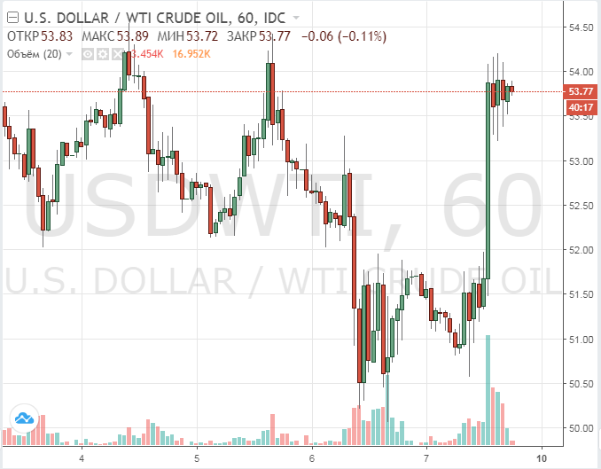 В настоящее время нефть марки West Texas Intermediate торгуется на уровне $53.77 (+4.02%) по сравнению с $53.83 до публикации данных.