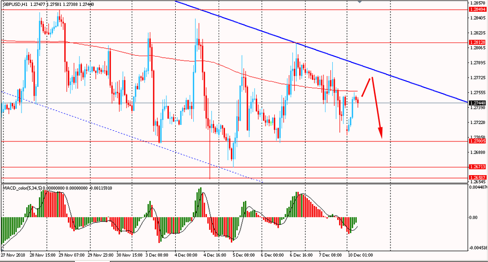 Пара GBP/USD сегодня утром торговалась в диапазоне $1.2710-55, оставаясь около пятничного минимума. В последний день прошлой торговой недели пара, оттолкнувшись от линии сопротивления общего нисходящего канала, упала и закрыла день в красной зоне. Помимо этого, GBP/USD удалось вернуться ниже линии скользящей средней MA 200 H1. На данный момент пара продолжает оставаться под давлением, оставаясь ниже линии мувинга в рамках общего даунтренда от 7 ноября. Лучше и далее придерживаться южного направления в торговле, придерживаясь общего медвежьего тренда, и на формирование коррекции открывать новые продажи фунта против американского доллара.