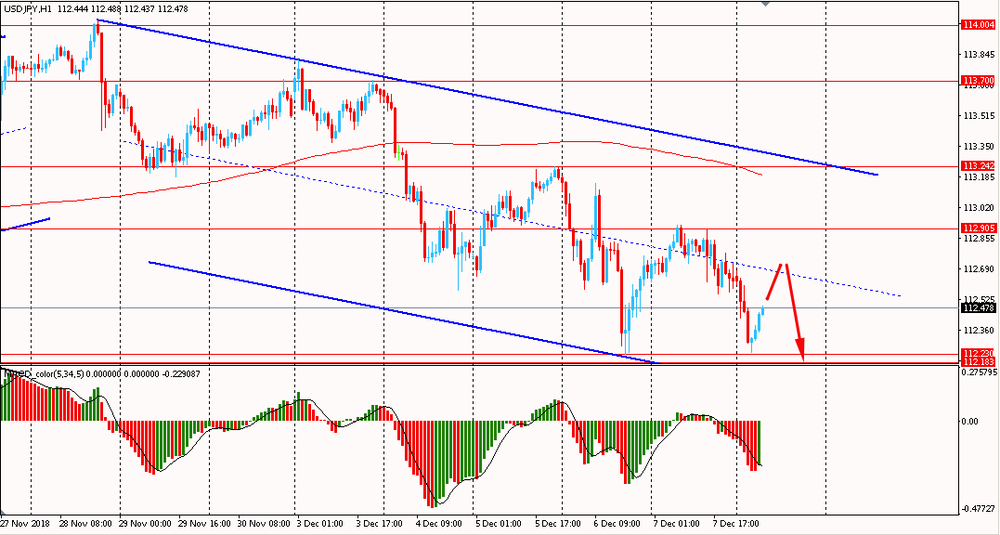 Сегодня утром пара USD/JPY упала к Y112.25, оставаясь около недельных минимумов. В пятницу пара, оттолкнувшись от срединной линии нисходящего канала упала и закрыла день на отрицательной территории. На данный момент медведи продолжают удерживать инициативу: пара торгуется в даунтренде от 28 ноября, ниже линии скользящей средней MA 200 H1. Пока USD/JPY, торгуется ниже мувинга и наклонной линии сопротивления, есть смысл искать новые продажи на формирование коррекционной структуры.