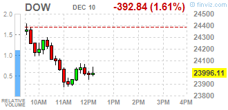Большинство компонентов DOW в минусе (29 из 30). Лидер роста - Intel Corporation (INTC, +0.61%). Аутсайдер - Exxon Mobil Corporation (XOM, -3.34%).
