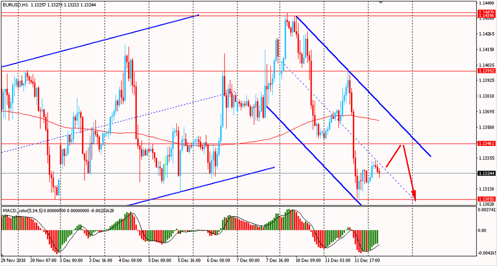 Сегодня утром пара EUR/USD торговалась в диапазоне $1.1315-35, оставаясь около вчерашнего минимума. Во вторник пара, оттолкнувшись от линии сопротивления нисходящего канала, упала и закрыла день на отрицательной территории. Помимо этого, евро сумело пробить и закрепиться ниже линии скользящей средней MA 200 H1. Таким образом пара формирует новое импульсное движение в нисходящем канале от 10 декабря. До тех пор пока пара будет находится в рамках данного даунтренда есть смысл придерживаться медвежьего направления и на откатах искать точки входа на продажу.