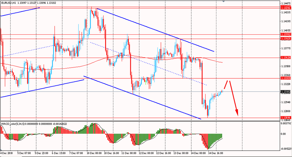 Сегодня утром пара EUR/USD торговалась в диапазоне $1.1300-15, оставаясь около недельного минимума. В пятницу пара, оттолкнувшись от линии MA 200 H1, упала и закрыла день на отрицательной территории. Помимо этого, евро сумело пробить срединную линию нисходящего канала. Таким образом пара формирует новое импульсное движение, в рамках нисходящего тренда от 10 декабря. До тех пор пока пара будет находится ниже линии скользящей средней MA 200 H1 есть смысл придерживаться медвежьего направления и на откатах искать точки входа на продажу.