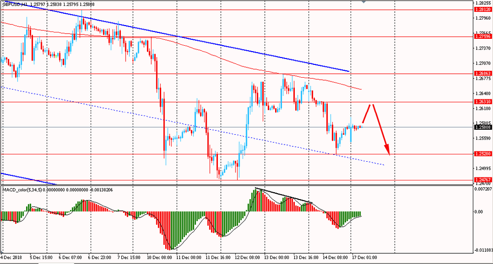 Пара GBP/USD сегодня утром торговалась в диапазоне $1.2555-00, оставаясь около пятничного минимума. В последний день прошлой торговой недели, оттолкнувшись от линии MA 200 H1, усиленная образованием медвежьей дивергенции, пара весь день снижалась и закрыла день в красной зоне. Таким образом GBP/USD продолжает развивать импульсную нисходящую структуру. Необходимо понимать, что пара все еще остается ниже линии скользящей средней MA 200 H1 в рамках общего даунтренда от 7 ноября. В данной ситуации лучше и далее придерживаться южного направления в торговле и на образование коррекции открывать новые продажи фунта против американского доллара.