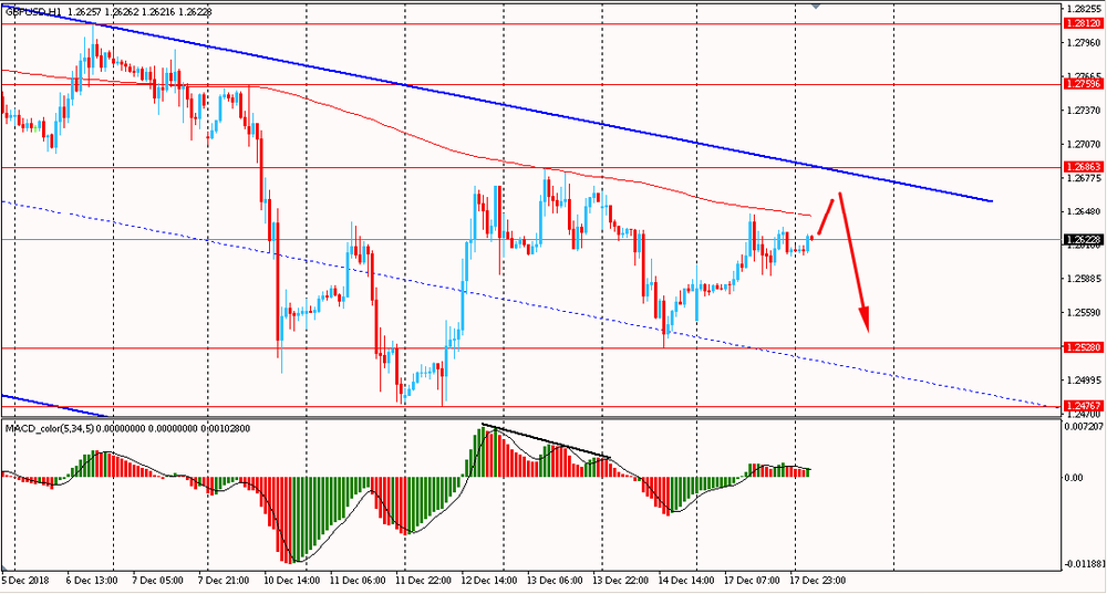 Пара GBP/USD сегодня утром торговалась в диапазоне $1.2610-25, оставаясь около вчерашнего максимума. В понедельник пара выросла и вошла в корреляционную фазу. Но, несмотря на откат, фунт продолжает оставаться ниже линии скользящей средней MA 200 H1 в рамках общего даунтренда от 7 ноября. В данной ситуации лучше и далее придерживаться южного направления в торговле и на окончание начатого вчера отката открывать новые продажи фунта против американского доллара.
