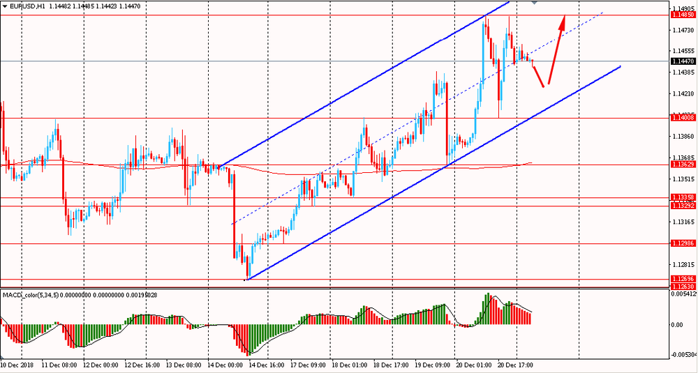 В четверг EUR/USD, оттолкнувшись от линии поддержки общего восходящего тренда, выросла и закрыла день на положительной территории. Сегодня утром пара торгуется в диапазоне $1.1445-60, оставаясь около вчерашнего максимума. На данный момент евро продолжает оставаться выше линии скользящей средней MA 200 H1. Таким образом быки все еще удерживают инициативу и развивают новый восходящий импульс. Пока EUR/USD будет удерживаться выше мувинга, есть смысл придерживаться северного направления и на формирование коррекции искать точки входа на покупку.