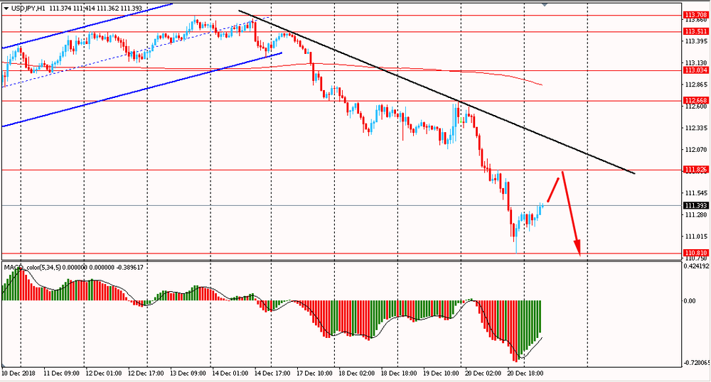 В четверг USD/JPY, оттолкнувшись от линии сопротивления общего нисходящего канала, упала и закрыла день в красной зоне. Сегодня утром пара торговалась в диапазоне Y111.10-40, оставаясь около недельного минимума. На данный момент пара торгуется в рамках даунтренда и остается под полным контролем медведей. По-прежнему USD/JPY остается ниже линии скользящей средней MA 200 H1, и пока пара остается ниже данного мувинга и линии сопротивления от 14 декабря, есть смысл и далее искать точки входа на продажу при формирование коррекций.