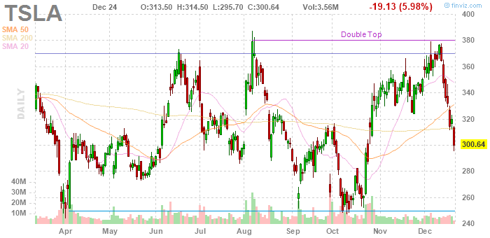На текущий момент акции Tesla (TSLA) котируются по $300.64 (-5.98%)