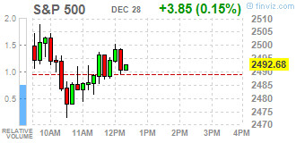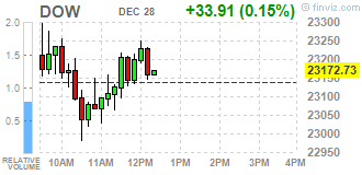 Большинство компонентов DOW в плюсе (22 из 30). Лидер роста - Intel Corp. (INTC, +1.34%). Аутсайдер - The Procter & Gamble Co. (PG, -0.43%).