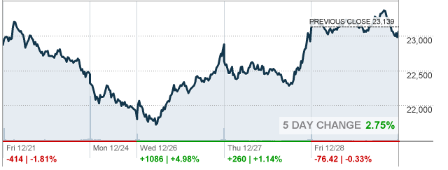 В пятницу фондовые индексы США колебались между прибылями и убытками, и завершили торги без единой динамики в условиях повышенной волатильности. В фокусе инвесторов также оказались неоднозначные экономические данные. Национальная ассоциация риэлторов сегодня сообщила, что контракты на покупку ранее принадлежавших домов неожиданно упали в ноябре. Согласно ее данным, индекс незавершенных сделок по продаже домов снизился на 0.7% по сравнению с предыдущим месяцем, до 101.4 пункта. Напомним, в октябре индекс упал на 2,6%. Экономисты прогнозировали, что в ноябре индекс увеличится на 0.7%. По сравнению с прошлым годом незавершенные сделки по продаже жилья в ноябре снизились на 7.7%, что является одиннадцатым годовым падением подряд. В то же время, другой отчет показал, что индекс PMI Чикаго в декабре вырос до 65.4 с 66.4 в ноябре. Показатель оказался значительно выше прогноза экономистов - 62.