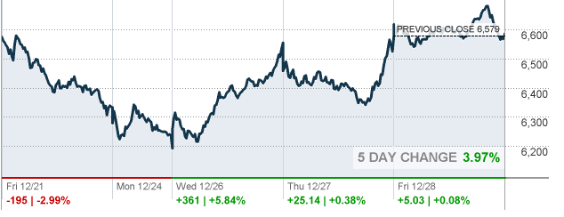 В отраслевом разрезе почти все сектора индекса S&P за период 24 - 28 декабря включительно показали повышение. Максимальный прирост продемонстрировал сектор здравоохранения (+1,3%). Наибольшее снижение зафиксировал сектор коммунальных услуг (-2,1%).