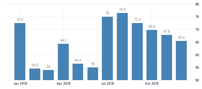 В отчете также сообщалось, что суб-индекс занятости упал в декабре до 64,5 пункта с 72,7 пункта в ноябре. Показатель закупочных цен снизился до 63,6 пункта с 71,9 пункта в ноябре. Между тем, индекс текущих доходов вырос до 75,0 пункта с 65,6 пункта в ноябре, а показатель ожидаемых доходов упал до 62,5 пункта с 78,1 пункта в ноябре.