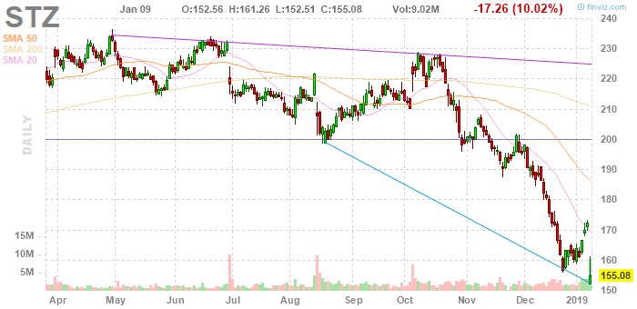 На текущий момент акции Corona Constellation Brands (STZ) котируются по $155.08 (-10,02%)
