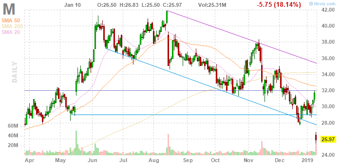 На текущий момент акции Macy's Inc (M) котируются по $25.97 (-18,14%)