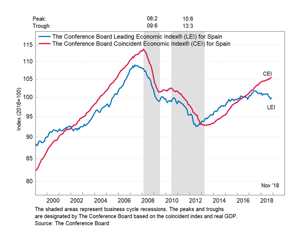 Результаты исследований, опубликованные Conference Board, показали: по итогам ноября ведущий экономический индекс (LEI) для Испании повысился на 0,3 процента, и составил 99,9 пункта (2016=100). Напомним, индекс зафиксировал падение на 0,6 процента в октябре и снижение на 0,2 процента в сентябре. В течение шести месяцев (с мая 2018 года по ноябрь 2018 года) показатель упал на 0,9 процента после снижения на 1,3 процента за предыдущий шестимесячный период (с апреля 2018 года по октябрь 2018 года).