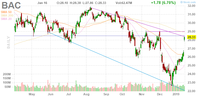 На текущий момент акции Bank of America (BAC) котируются по $28.33 (+6,70%)