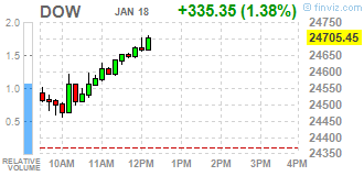 Большинство компонентов DOW в плюсе (28 из 30). Лидер роста - The Home Depot, Inc. (HD, +2.47%). Аутсайдер - Pfizer Inc. (PFE, -0.05%).