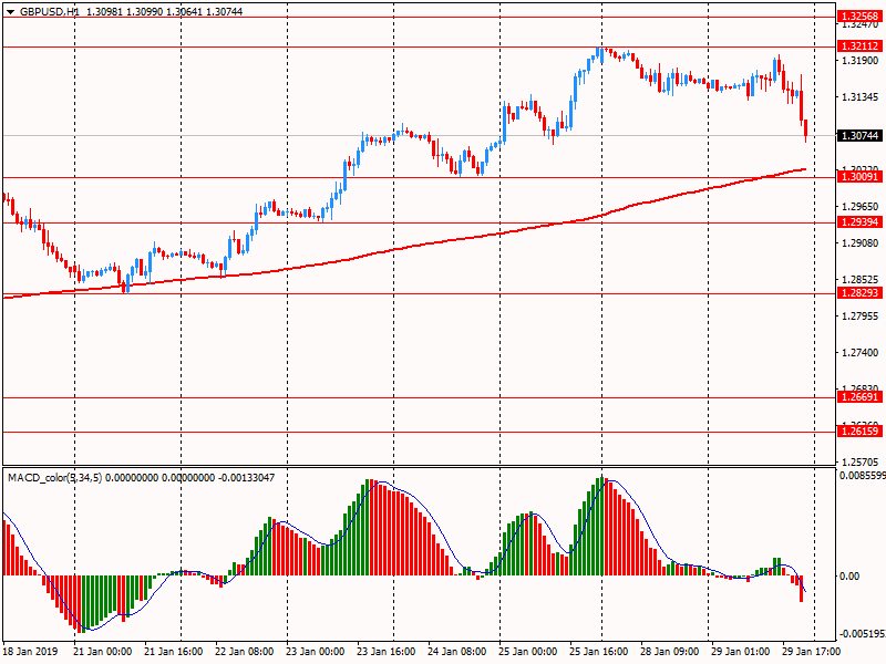 Фунт резко подешевел против доллара США, отреагировав на новости о том, что парламент Британии выступил против предложения отложить дату Брекзита на 9 месяцев, если соглашение не будет достигнуто к 26 февраля. Сейчас пара GBP/USD торгуется на $1,3074