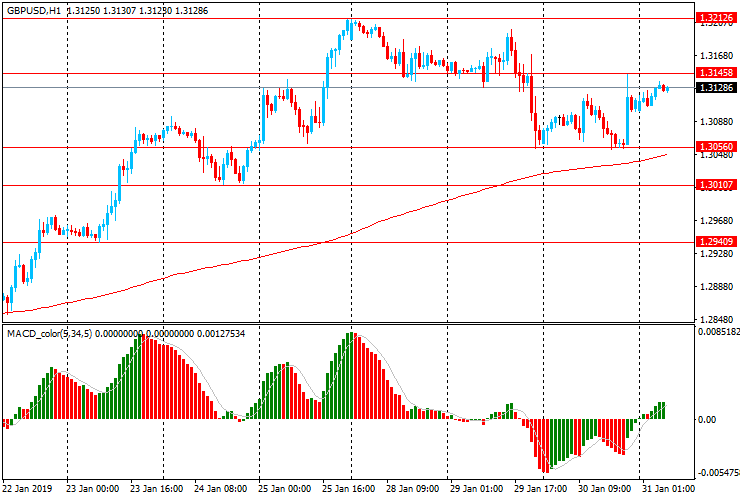 Пара GBP/USD вчера торговалась в диапазоне $1.3055-1.3145. Сегодня пара торгуется около вчерашнего максимум. Пара остается выше уровня скользящей средней МА (200) Н1 и глобально находится в рамках общего восходящего канала от 12 декабря. В этой ситуации лучше и далее придерживаться северного направления в торговле и на образование коррекции искать точки входа на покупку.