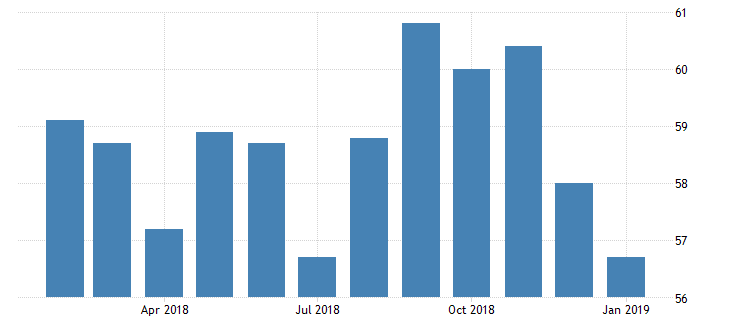 Индекс деловой активности в сфере услуг США, рассчитываемый Институтом управления поставками (ISM), упал в январе до уровня 56,7 пунктов по сравнению с 58,0 пункта в декабре. Аналитики прогнозировали, что показатель снизится до 57,2 пункта. Напомним, индикатор является результатом опроса около 400 фирм из 60 секторов по всем США. Значение превышающее 50, обычно рассматривается как показатель роста производственной активности.