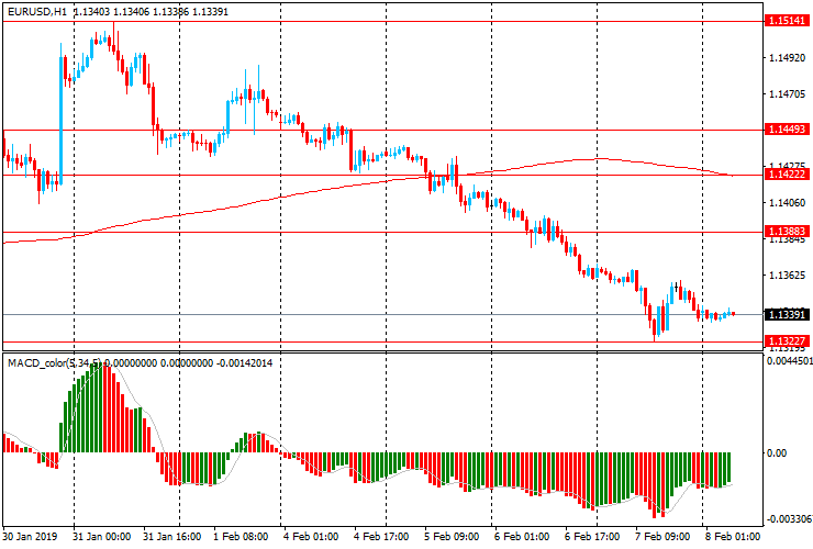 Пара EUR/USD торгуется в узком диапазоне около $1.1340 немного выше вчерашнего минимума $1.1320. Единая валюта опустилась ниже линии скользящей средней MA 200 H1 и МА (200) Н4. Таким образом можно заявить, что EUR/USD начинает формировать новый нисходящий тренд. В этой ситуации, есть смысл начинать придерживаться южного направления в торговле и далее искать точки входа на продажу.
