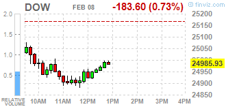 Большинство компонентов DOW в минусе (22 из 30). Аутсайдер - Exxon Mobil Corp (XOM, -1.98%). Лидер роста - United Technologies Corp. (UTX, +0.50%).