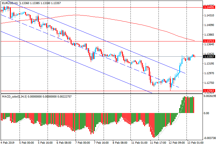 Пара EUR/USD вчера выросла, пробив уровень нисходящего канала от 31 января. Пара выросла во вторник до $1.1335 и сегодня торгуется в узком диапазоне около вчерашнего максимума. Несмотря на рост, единая валюта остается ниже линии скользящей средней MA 200 H1 и находится под полным контролем медведей. В этой ситуации лучше продолжать придерживаться южного направления в торговле и далее искать точки входа на продажу.