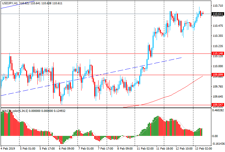 Пара USD/JPY продолжает расти в начале сегодняшних торгов, оставаясь под полным контролем быков. Вчера пара торговалась в диапазоне Y110.30- Y110.65 . Сегодня на ранних торгах USD/JPY снова достигла максимального значения с начала года (Y110.65). Пара закрепилась выше уровня скользящей средней МА (200) Н1 и продолжает торговаться в рамках нового восходящего канала от 3 января. В этой ситуации лучше и далее придерживаться северного направления в торговле и на образование коррекции искать точки входа на покупку.