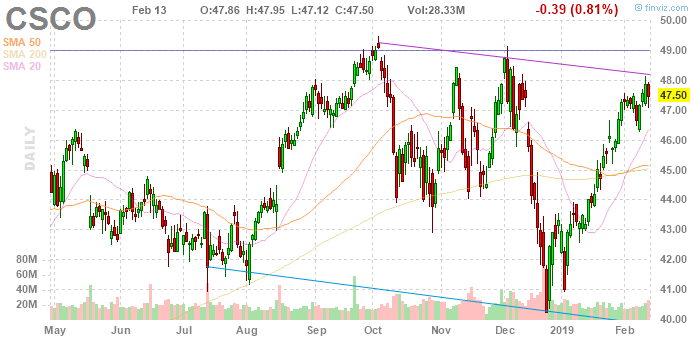 Акции CSCO на премаркете выросли до уровня $49.60 (+4.42%).