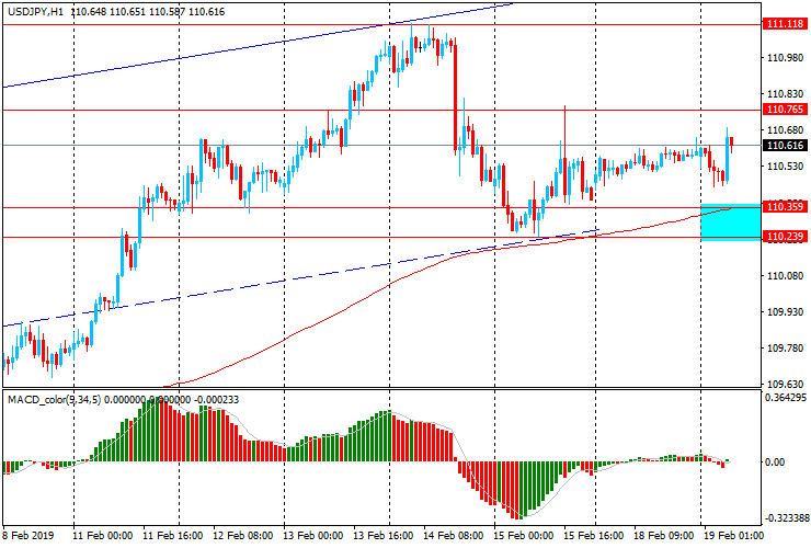 Пара USD/JPY, как и в ходе вчерашних торгов, продолжает торговаться в узком диапазоне (Y110.40-65) около максимума 12 февраля. Пара остается выше уровня скользящей средней МА (200) Н1 и продолжает торговаться в рамках восходящего канала от 3 января. В этой ситуации лучше и далее придерживаться северного направления в торговле и на образование коррекции искать точки входа на покупку.