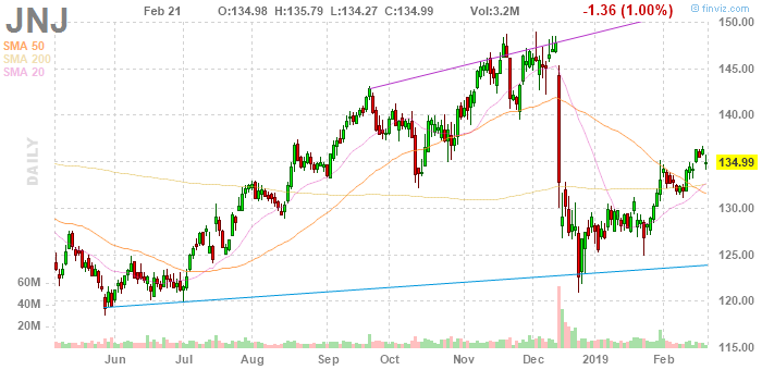 На текущий момент акции Johnson & Johnson (JNJ) котируются по $134.99 (-1.00%).