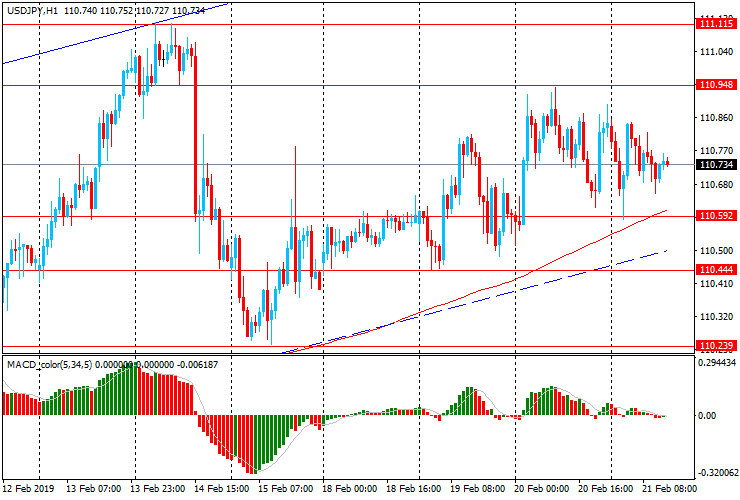 Пара USD/JPY вчера торговалась в диапазоне (Y110.55-85). Сегодня пара торгуется с незначительным ростом, достигнув, на момент написания статьи, уровня Y110.75. USD/JPY по прежнему продолжает торговаться в рамках восходящего канала от 3 января немного выше уровня скользящей средней МА (200) Н1, оставаясь под полным контролем быков. В этой ситуации лучше и далее придерживаться северного направления в торговле и на образование коррекции искать точки входа на покупку.