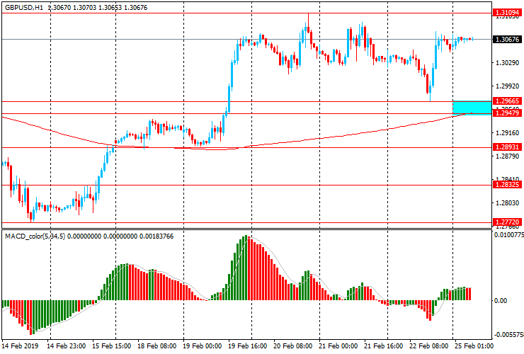 Пара GBP/USD в пятницу торговалась в диапазоне: после снижения до $1.2965, пара к концу торгов вернула все утраченные позиции и закрыла день с ростом до $1.3075. Сегодня на ранних торгах пара торгуется в узком диапазоне, около максимума пятницы. GBP/USD по прежнему находясь выше уровня скользящей средней МА (200) Н1 и МА (200) Н4, что говорит о возможном начале формирования нового восходящего тренда. В этой ситуации лучше начать придерживаться северного направления в торговле и на образование коррекции искать точки входа на покупку.
