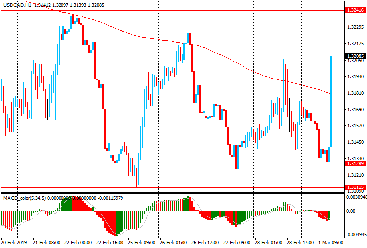 После выхода данных по ВВП Канады канадский доллар резко снизился против доллара США. Пара USD/CAD резко выросла с C$1.3130 до C$1.3210 (максимум 28 февраля).