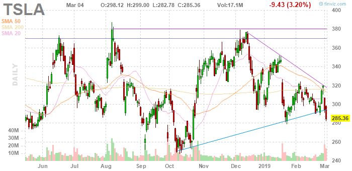 Акции TSLA на премаркете выросли до уровня $283.07 (-0.80%).