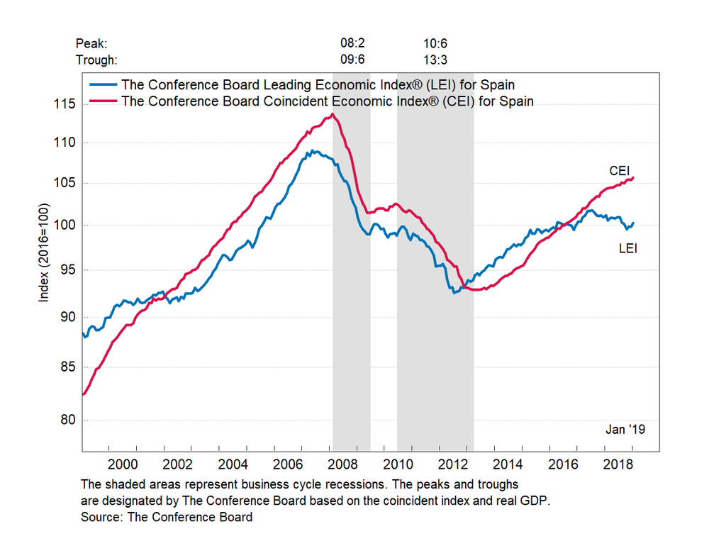 Результаты исследований, опубликованные Conference Board, показали: по итогам января ведущий экономический индекс (LEI) для Испании вырос на 0,4 процента, и составил 100,3 пункта (2016=100). Напомним, индекс зафиксировал нулевое изменение в декабре и повышение на 0,3 процента в ноябре. В течение шести месяцев (с июля 2018 года по январь 2019 года) показатель снизился на 0,7 процента после падения на 1,1 процента за предыдущий шестимесячный период (с июня 2018 года по декабрь 2018 года).
