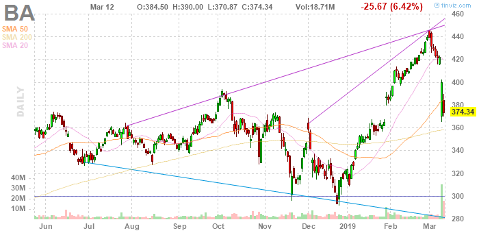 На текущий момент акции Boeing Co. (BA) котируются по $374.34 (-6.42%).
