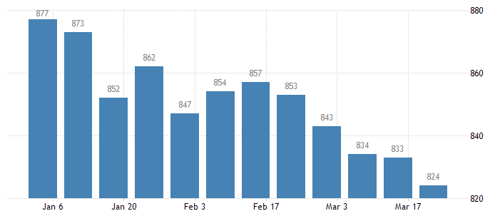 Отчет нефтесервисной компании Baker Hughes показал: с 16 по 22 марта количество активных буровых установок по добыче нефти в США упало на 9 штук, и составило 824 единицы. Напомним, годом ранее количество установок составляло 804 штуки. Количество установок по добыче газа снизилось на 1 штуку, до 192 единицы. Общее число буровых установок (газовых, нефтяных и прочих) сократилось на 10 штук, и составило 1016 штук.