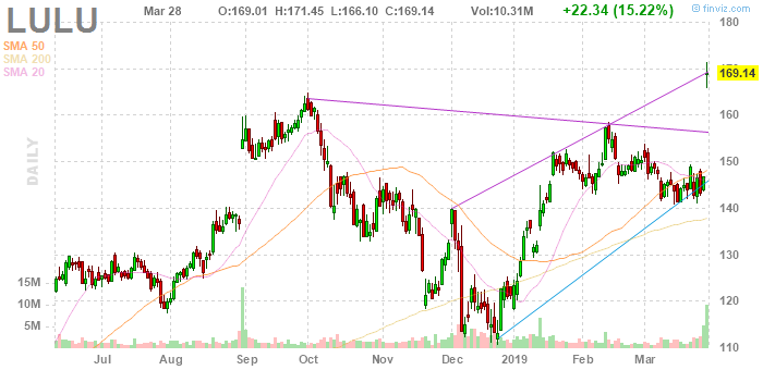 На текущий момент акции Lululemon (LULU) котируются по $169.14 (+15.22%).