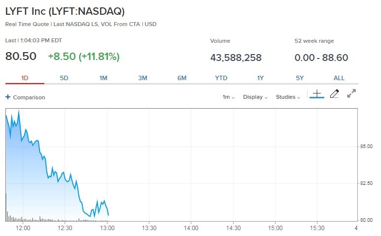 На текущий момент акции Lyft (LYFT) котируются по $80.50 (+11.81%).