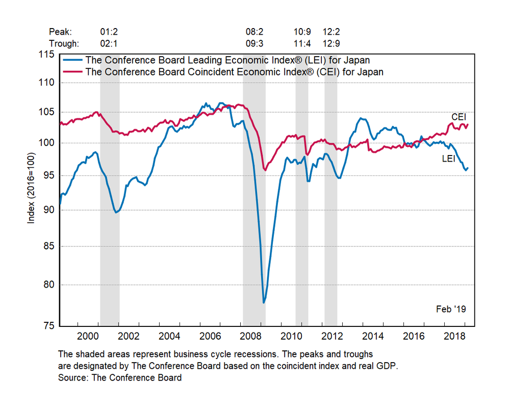 Результаты исследований, опубликованные Conference Board, показали: по итогам февраля ведущий экономический индекс (LEI) для Японии вырос на 0,4 процента, и составил 96,2 пункта (2016=100). Напомним, индекс зафиксировал падение на 0,4 процента в январе и снижение на 0,8 процента в декабре. В течение шести месяцев (с августа 2018 года по февраль 2019 года) показатель упал на 1,9 процента после снижения на 3,1 процента за предыдущий шестимесячный период (с июля 2018 года по январь 2019 года).