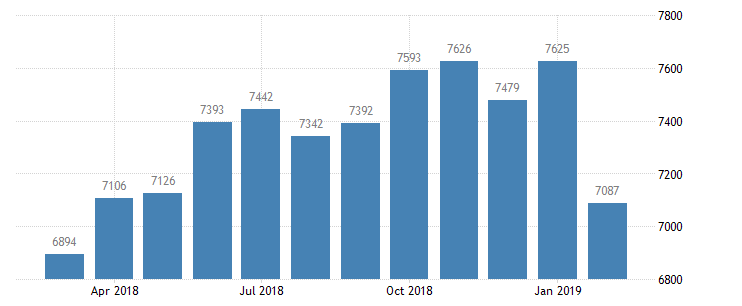 Обзор вакансий и текучести рабочей силы (JOLTS), опубликованный Бюро статистики труда США, показал, что в феврале количество вакансий упало до 7,087 млн. с 7,625 млн. в январе (пересмотрено с 7,581 млн.). Последнее значение оказалось самым низким с марта 2018 года. Аналитики ожидали, что число вакансий снизится до 7,550 млн. Уровень вакансий упал на 0,3 процента, и составил 4,5 процента. Количество вакансий сократилось в частном секторе (-523 000) и почти не изменилось в правительственной сфере (+59 000). Количество вакансий снизилось в ряде отраслей, при этом наибольшее сокращение произошло в сфере размещения и питания (-103 000), недвижимости, аренды и лизинга (-72 000), транспорта, складирования и коммунальных услуг (-66 000).